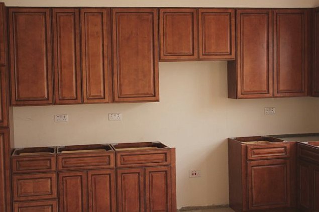 Washington Model Kitchen Cabinets Being Installed Prior to Granite Countertops
